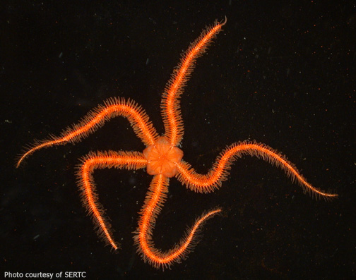 Ophiothrix angulata is most common, although this orange form