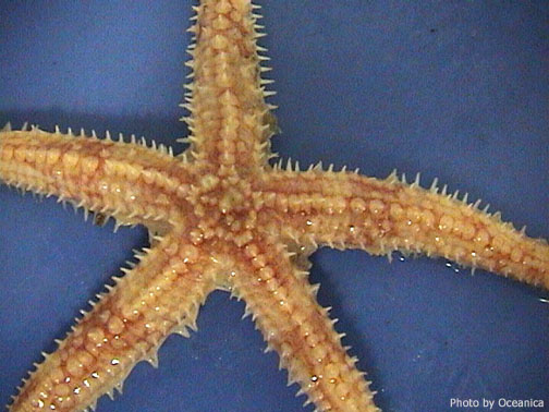 Conspicuous spines form a ridge along the center of each arm, and are often surrounded by wreaths of pedicellariae (defensive pinching structures).
