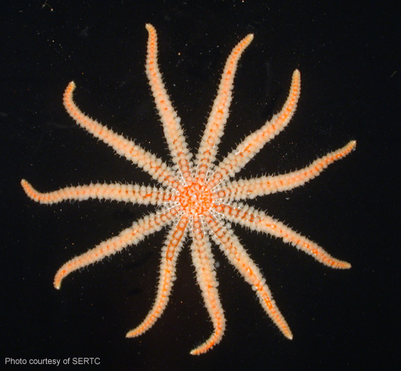 Members of this family have 9 to 50 arms; this specimen has 11.
