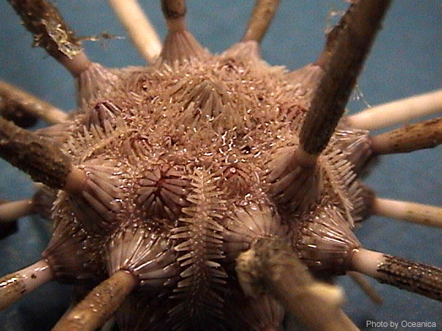 The ambulacral plates are covered with short spines.