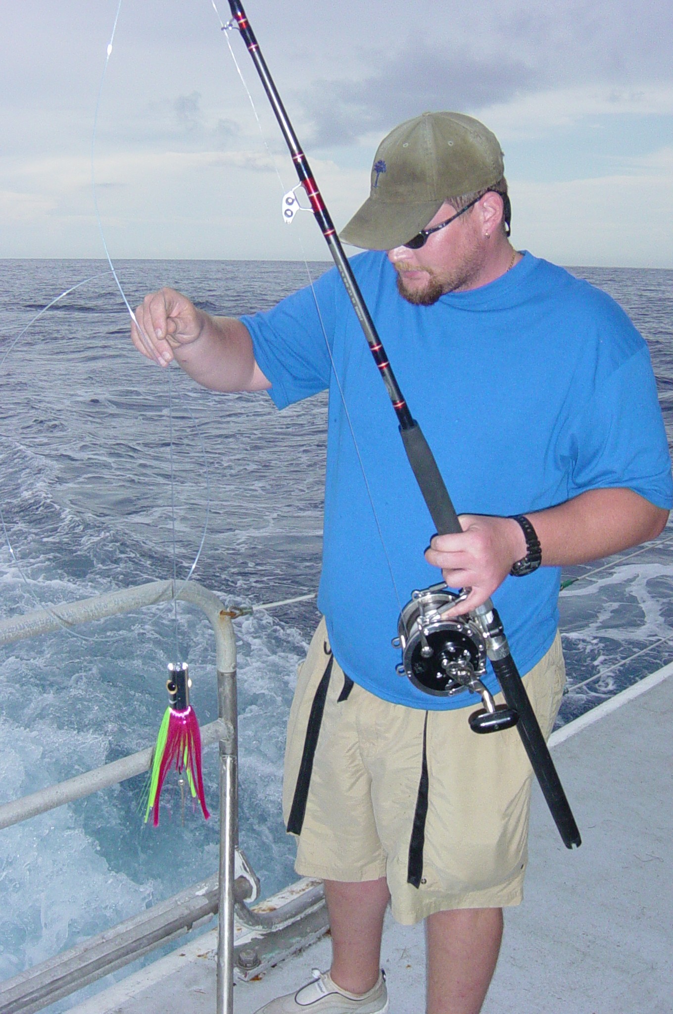 Josh Loefer prepares to cast a lure as part of the billfish tagging project.