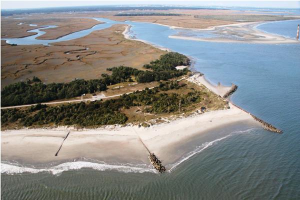 Temporal changes (i.e., changes occurring through time) are documented for Folly's northeast end.