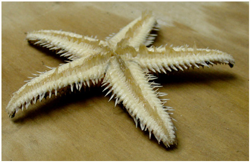 are flexible; here shown with extended, pointed tube feet.