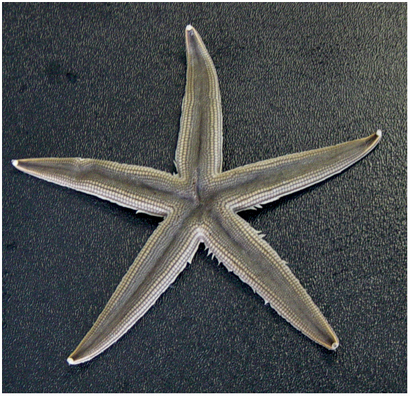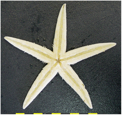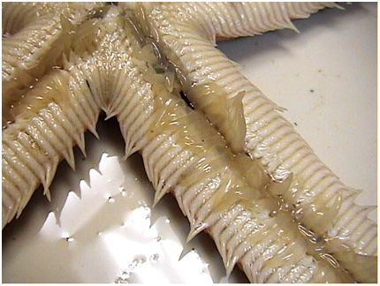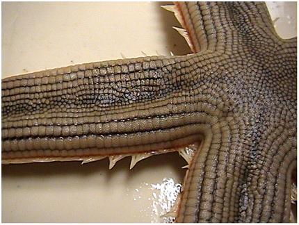 Arms are bordered by a fringe of white spines, 1 spine/plate.