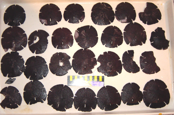 of the photos). The posterior edge is nearly straight. Test length (height) is ~ 10 cm.