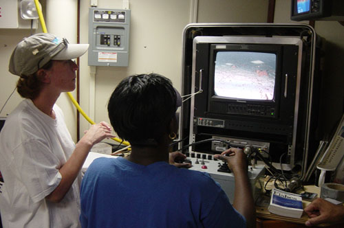 Students operate the ROV from a control panel aboard the ship.
