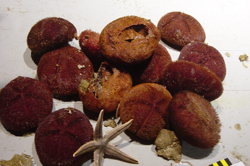 Previous | Next | Gallery (15 of 18) These large echinoderms are related to sand dollars and sea biscuits.