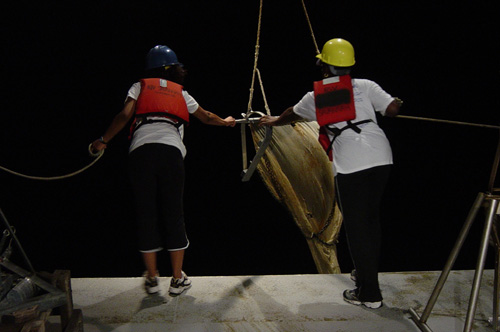 Students retrieve the trawl.