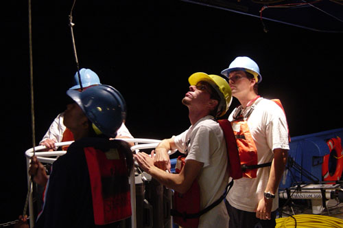 The winch operator is on a platform above the deck.