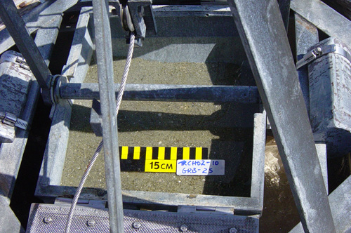 Previous | Next | Gallery (6 of 12) Each sample is photographed with the Leg and Station number and a scale bar for size reference.