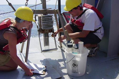 Previous | Next | Gallery (6 of 12) The core sampler is tightened onto the apparatus before deployment.
