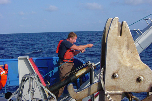 One of the scientists monitors the cable.