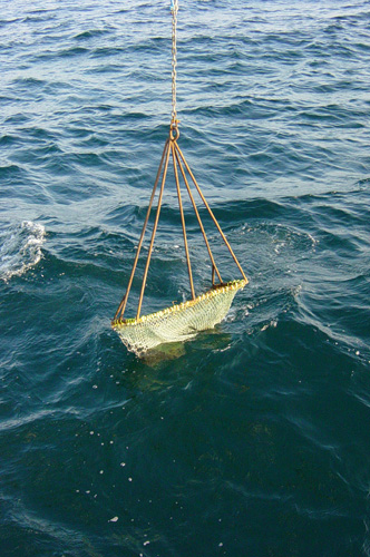 The dredge being lowered into the water