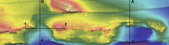 Profile D-F running through the Paleo-Channel (scale in meters).