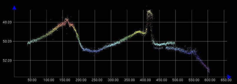 Profile across Triple Ledges (scale in meters). The easternmost ledge (to the right) is less pronounced.