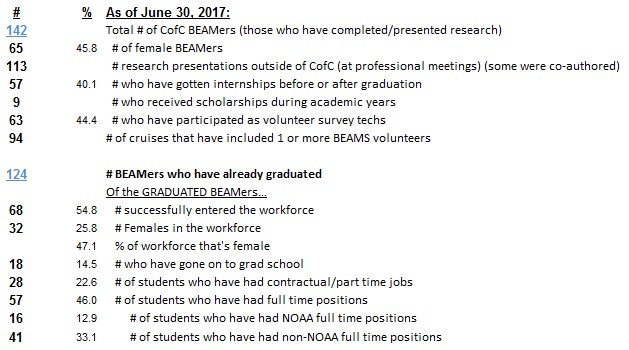 on the College of Charleston BEAMS Program Alumni successes.