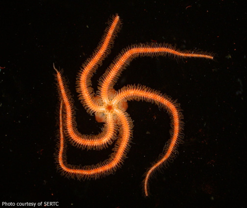 The orange color is carried to the oral side of the arms and disc. The disc contains the animal's gut and gonads.
