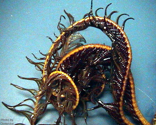 Feather-like pinnules extend from each arm of this crinoid.