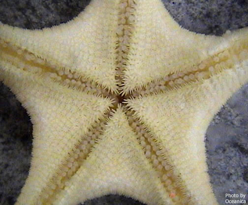 Little is known of the diet of Mediaster. The oral spines may be used for tearing soft tissues of sponges or soft corals, and the tube feet have large suckers.