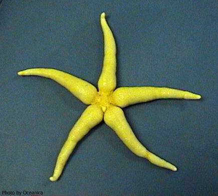 These difficult-to-identify seastars are characterized by a small disc with long, tapering arms often swollen at the bases.
